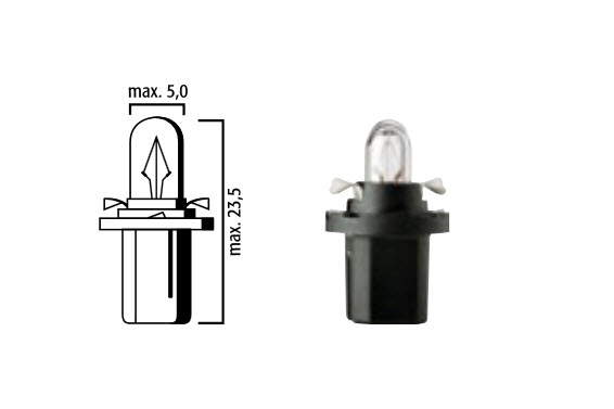 FLOSSER – AMPOLLETA 12V 1,2W / COLA PESCADO / CON SOQUETE PLASTICO NEGRO / BASE B8,5d / 5,0X23,5 / OEM: 419101